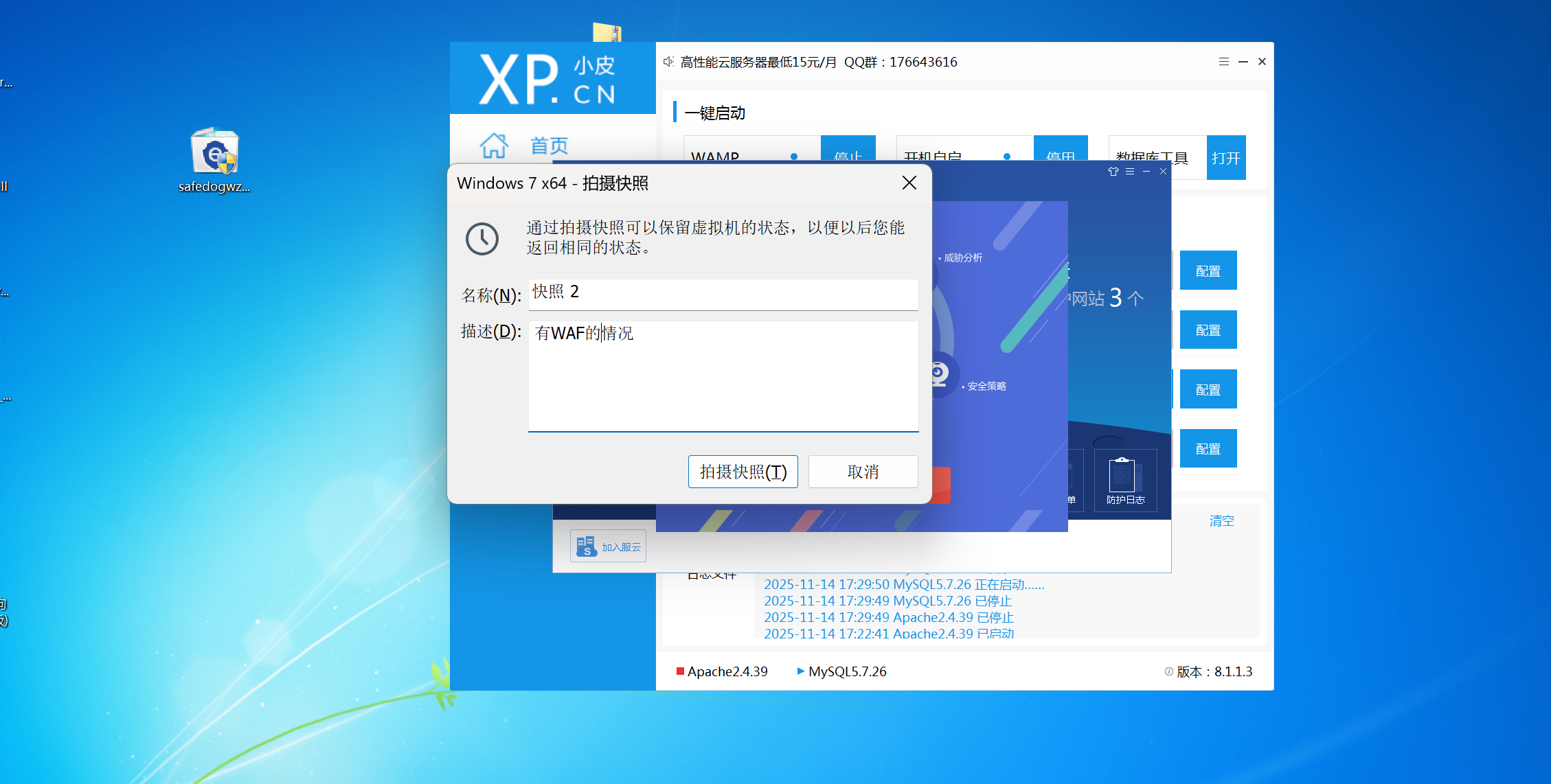 5.再打个快照 防止环境被破坏 同时也需要和之前无waf情况对照