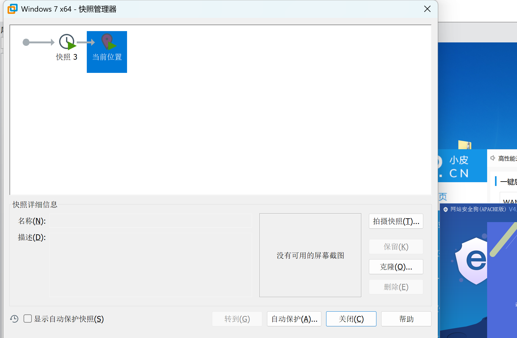 不知道大家有没有遇到这种情况 因为我测试的是只有这台win7虚拟机是这样 安装的其他虚拟机都是可以打多个快照的