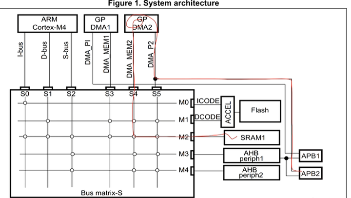 那么DMA就可以不走里面直接从外面拿到数据再存入SRAM里