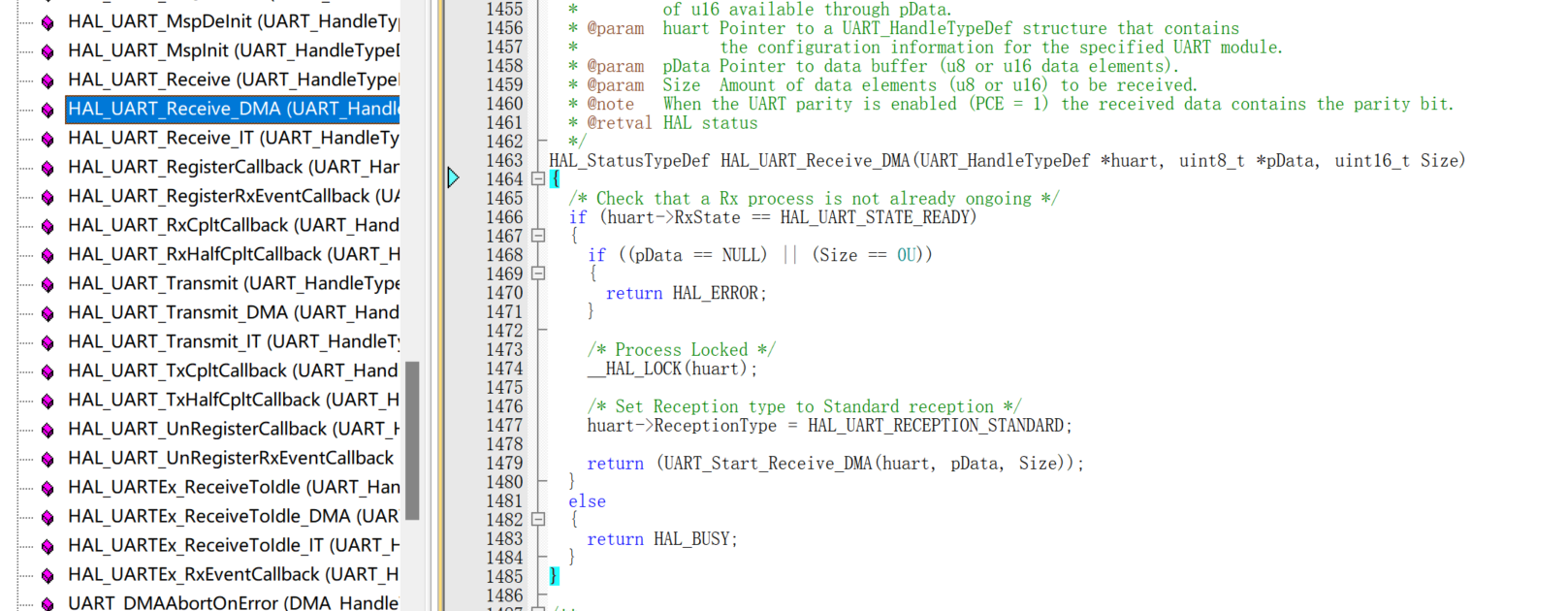 HAL_StatusTypeDef HAL_UART_Receive_DMA(UART_HandleTypeDef *huart, uint8_t *pData, uint16_t Size)