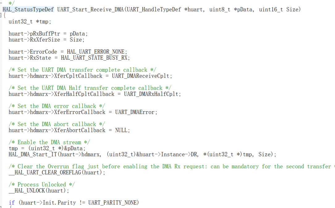 huart->hdmarx->XferCpltCallback = UART_DMAReceiveCplt;