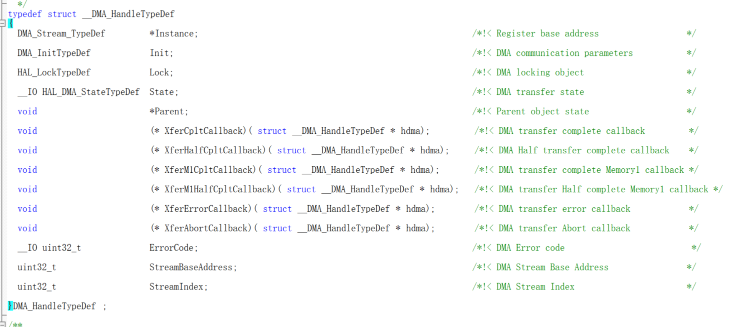 点开DMA的类定义不难看到挂载在其中的回调函数 , XferCpltCallback就在其中 , 在传输完成之后进行回调