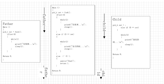 fork成功后,父子进程使用相同的代码段。父子进程开始运行的地方有所差异。