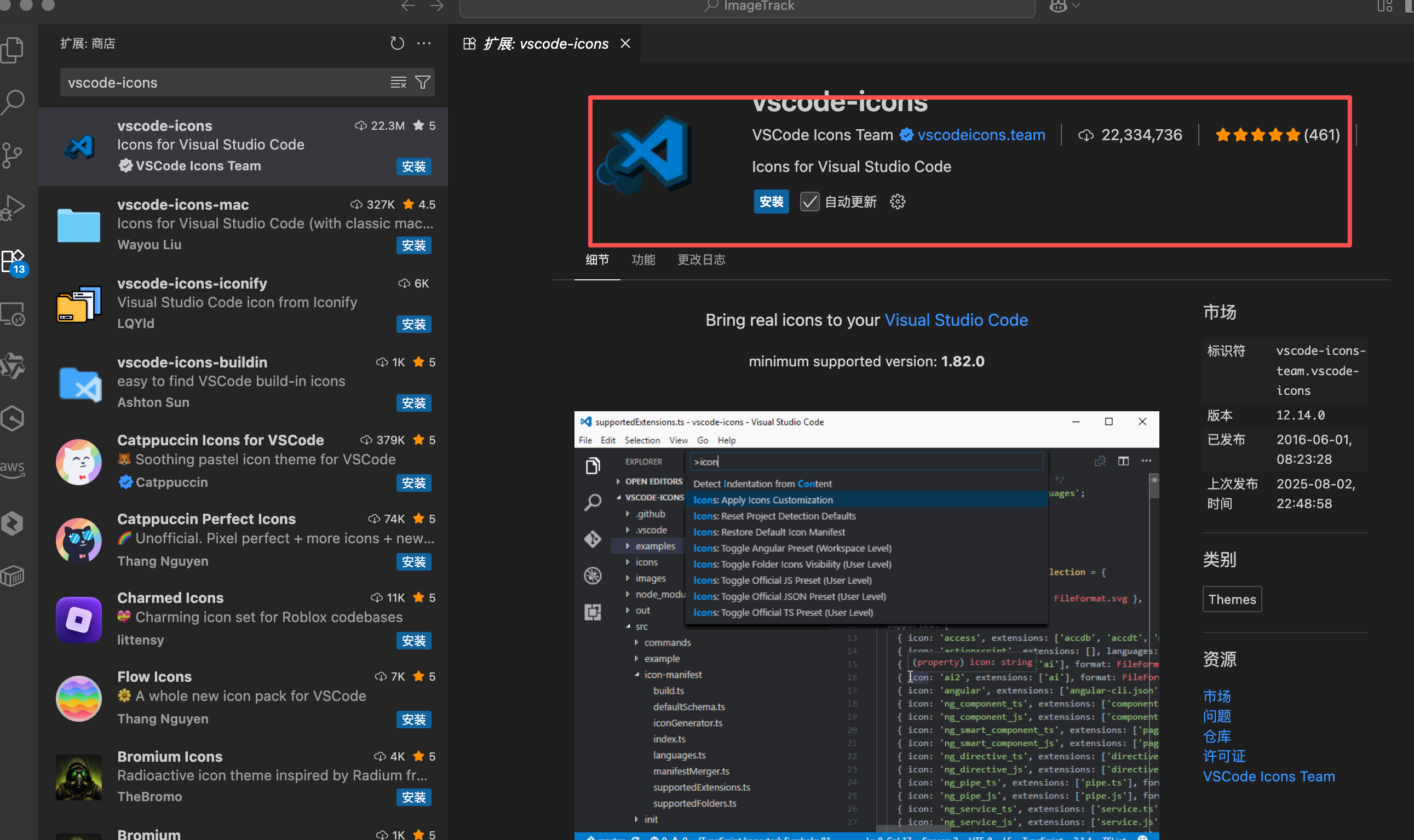 为了方便查看我们工程的目录结构,需要再安装一个vscode-icons插件。