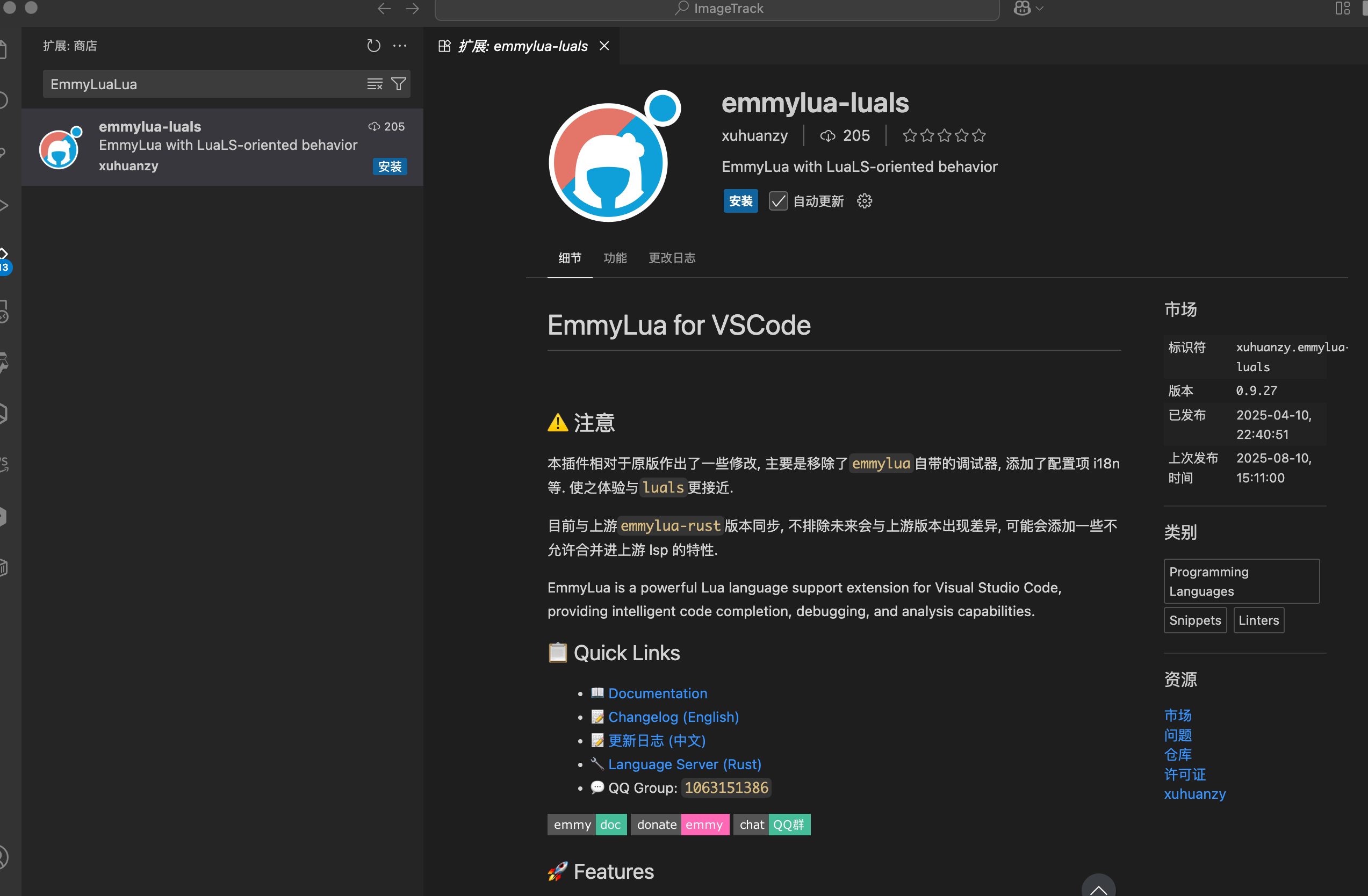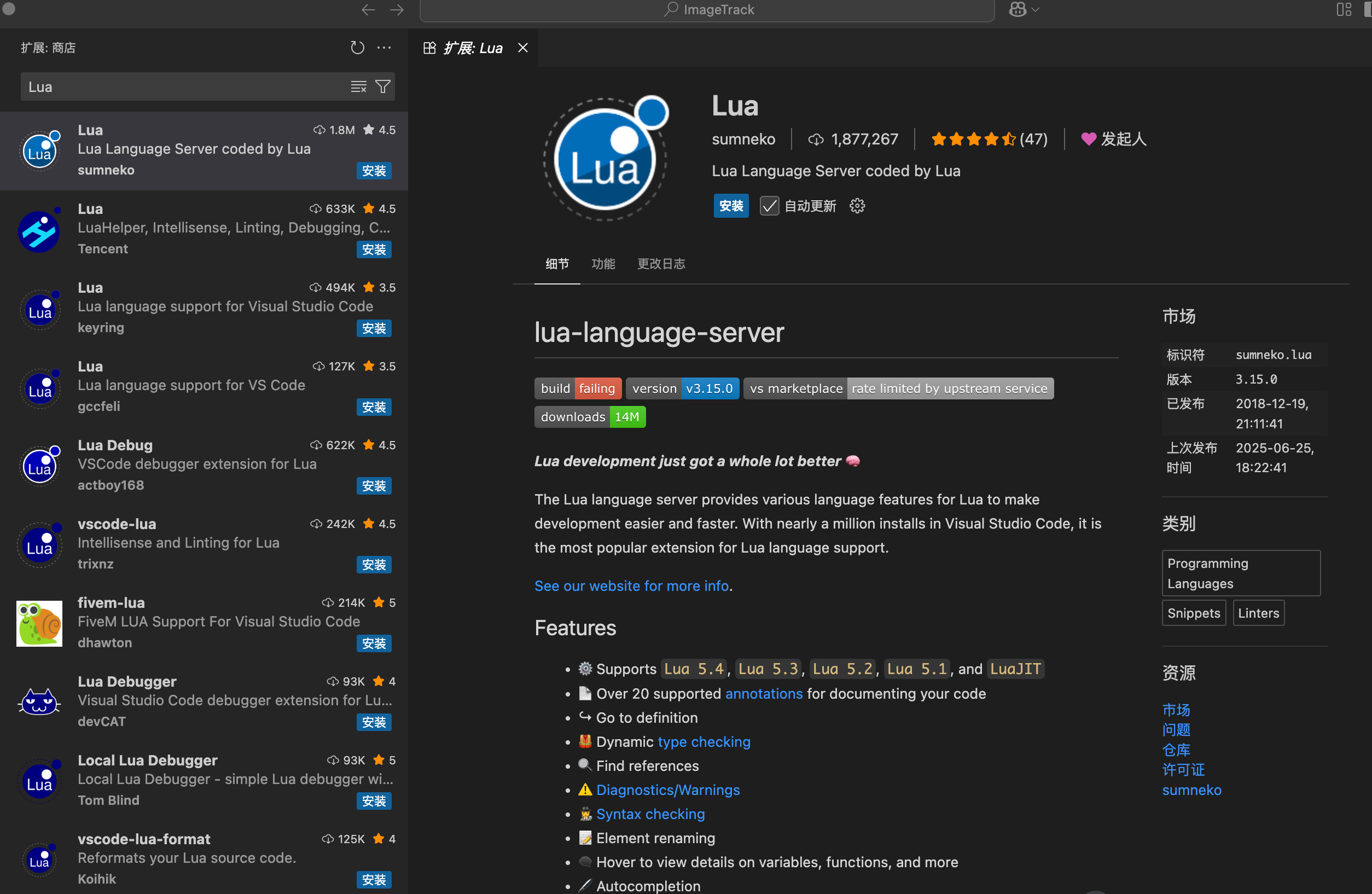 如果我们的项目有使用lua,还需要安装一下lua相关的插件,一般安装的是:EmmyLua和Lua两个插件。