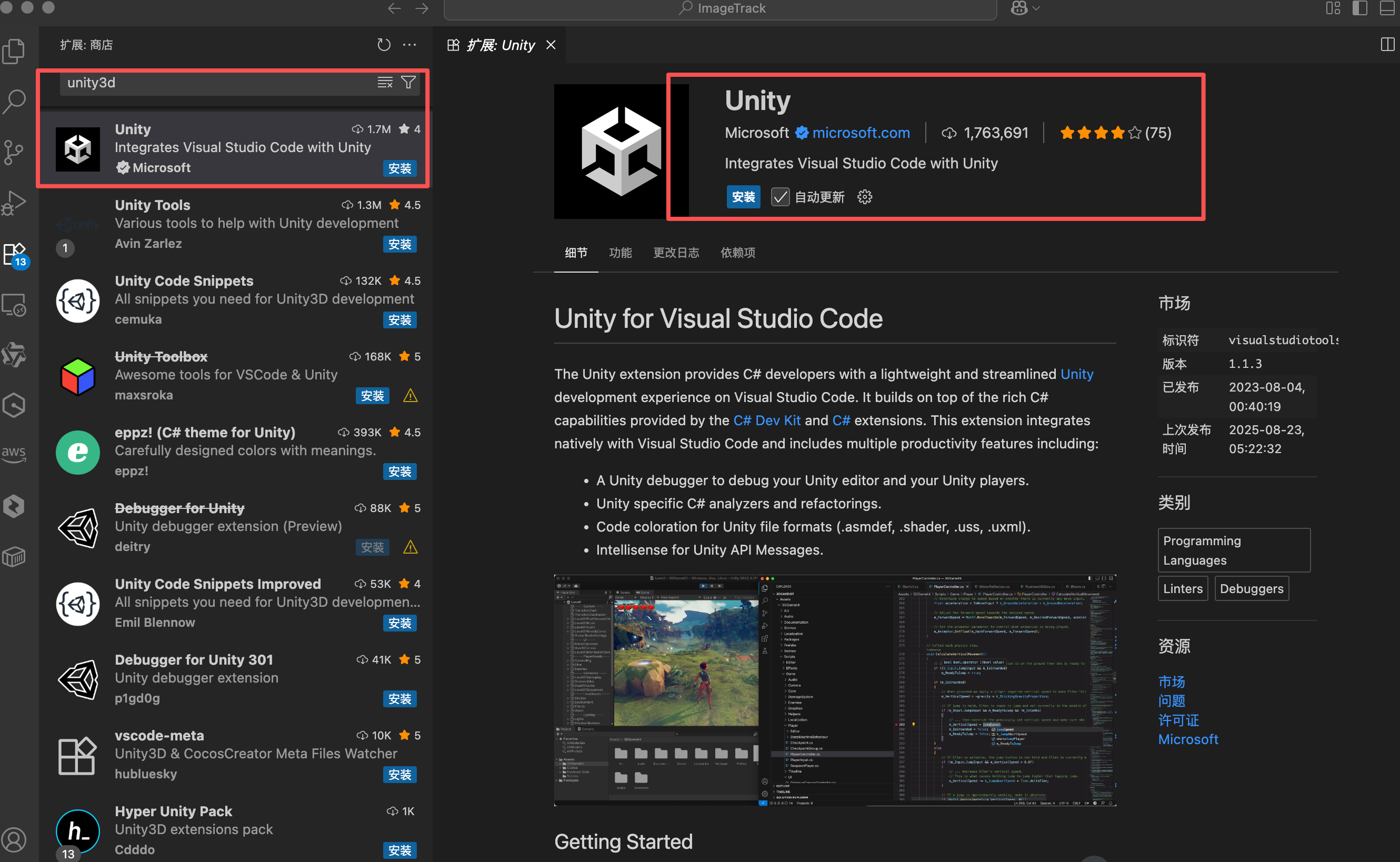安装完VS Code之后,就是要安装VS Code的插件,让VSCode作为Unity的代码编辑器,下面介绍一下需要安装的插件。