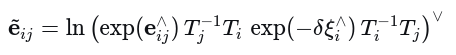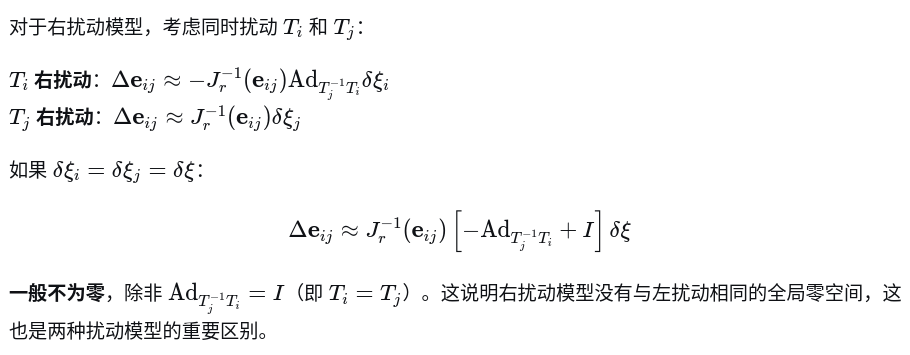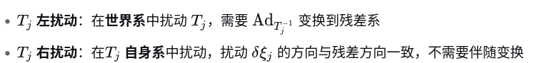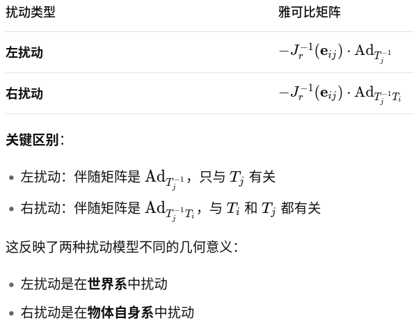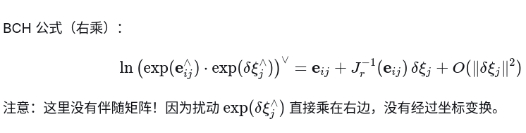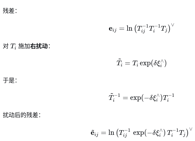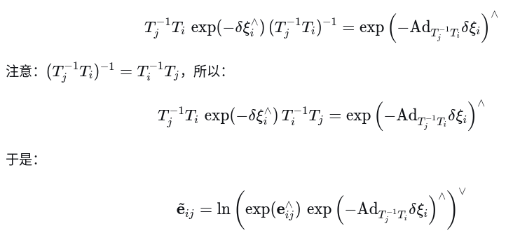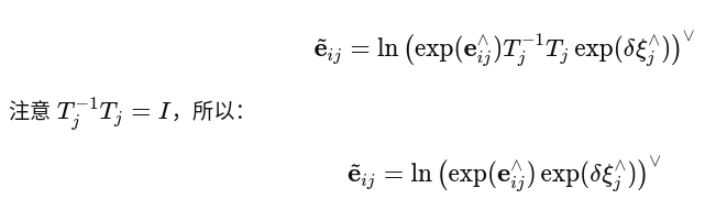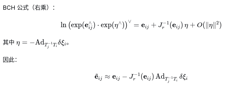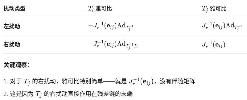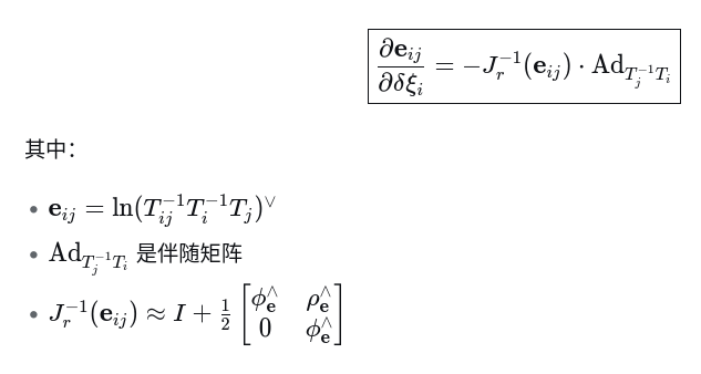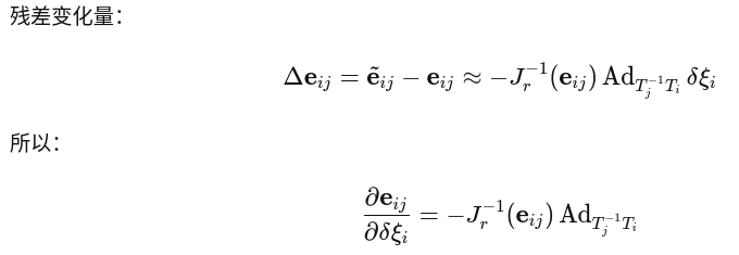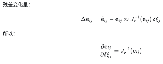 注意: 在(六)中介绍过,右雅可比可近似为单位阵,因此i时刻雅可比可简化为如下
