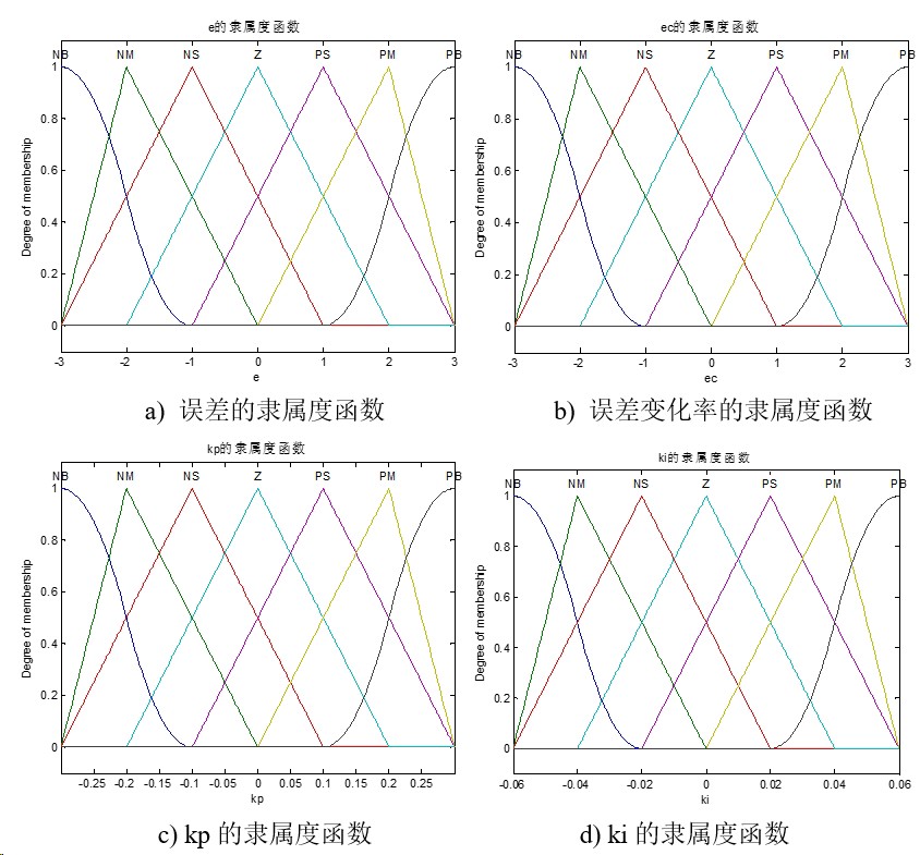 在这段代码里,首先通过newfis函数创建了一个模糊推理系统fuzzy_PID。然后分别定义了输入变量误差e和误差变化率ec,给它们划分了不同的模糊子集,像NB(负大)、NS(负小)等等,每个子集都对应特定的隶属度函数,这里使用了zmf(Z形隶属度函数)、trimf(三角形隶属度函数)、smf(S形隶属度函数)等。接着,又定义了输出变量kp(比例系数的调整量),同样划分模糊子集和确定隶属度函数。最后,通过addrule函数添加模糊规则,这些规则决定了根据输入的e和ec如何调整kp等参数,实际应用中规则会更丰富和复杂。
