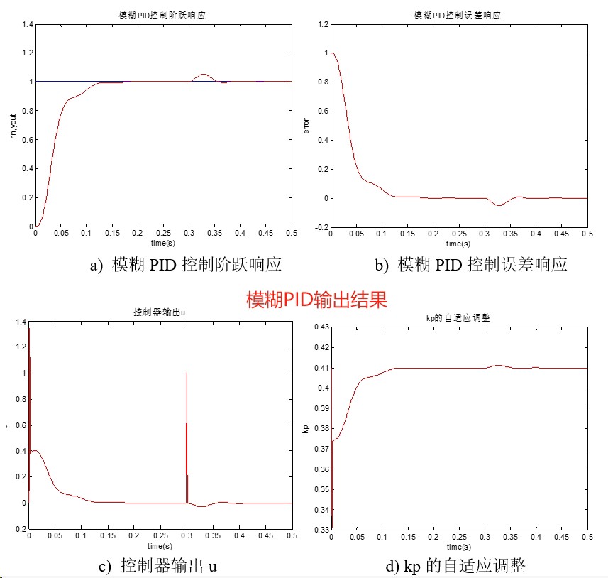 54.基于matlab的模糊自适应PID控制器,PID参数的整定必须考虑到在不同时刻三个参数的作用及相互之间的关系。 在线实时模糊自整定PID算法的基础上,通过计算当前系统e和误差变化率ec,利用模糊规则进行模糊推理,查询模糊矩阵表进行参数调整。 程序已调通,可直接运行。