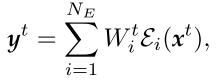 给定任务t的输入特征x^t,MoE-Adapters的输出为: