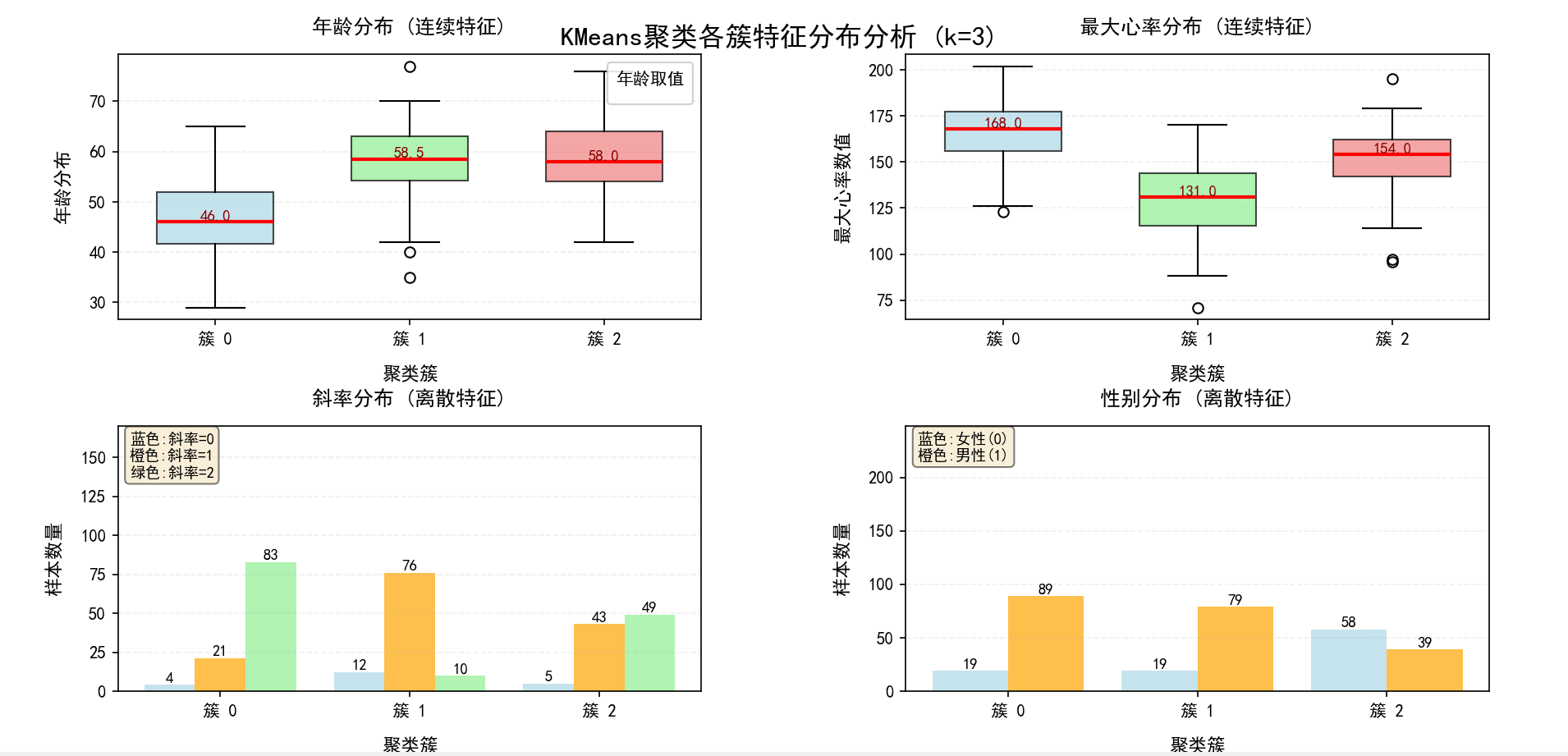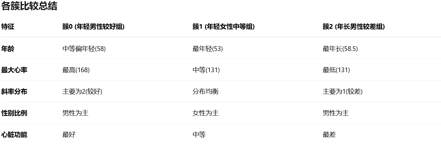 结果解释:聚类结果自然反映了所选特征维度的模式