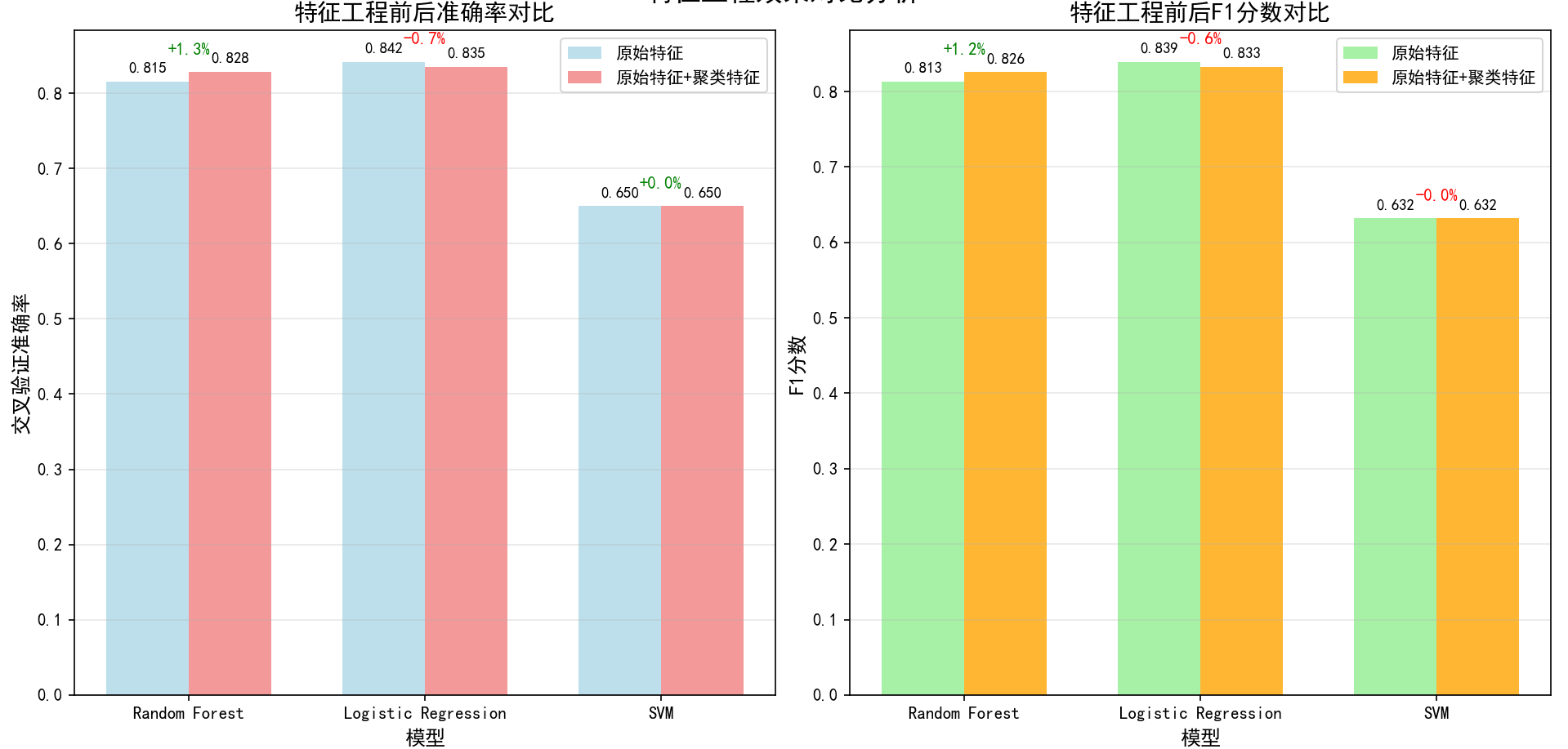 print(f"✗ 特征工程效果不明显,准确率平均变化 {avg_accuracy_improvement*100:.2f}%")