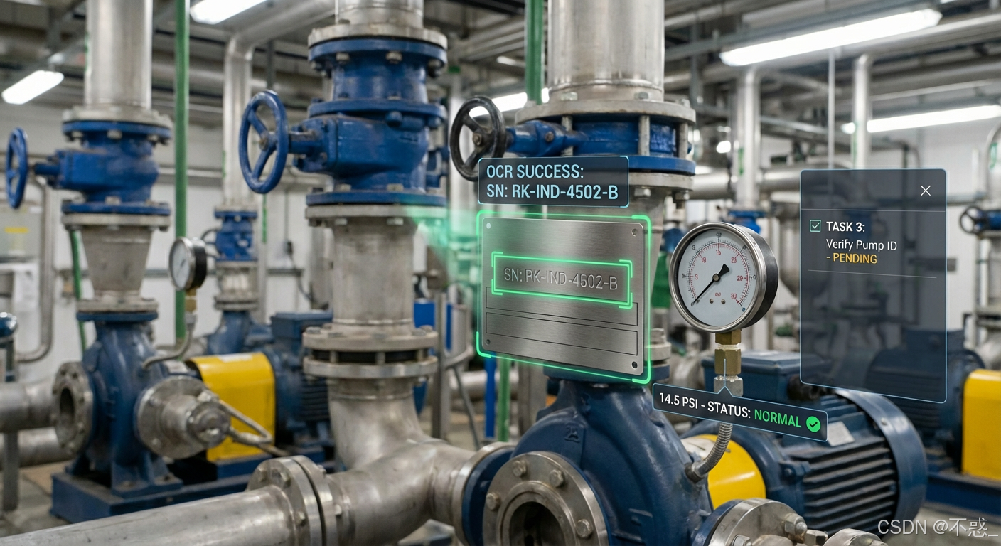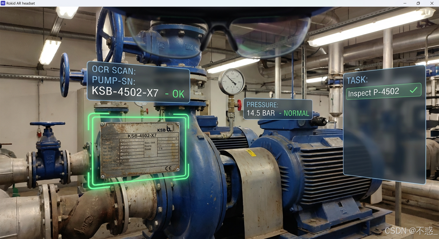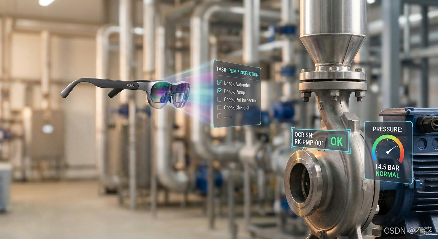 借助 Rokid AR 眼镜 进行第一视角的图像采集与叠加显示,并深度融合 OCR(光学字符识别)、条码识别与仪表读数推理 技术,可以将"识别 → 理解 → 指导"的数字化链路直接落地于巡检现场。这一方案不仅形成了完整的数据闭环,更显著降低了漏检率与误判率。