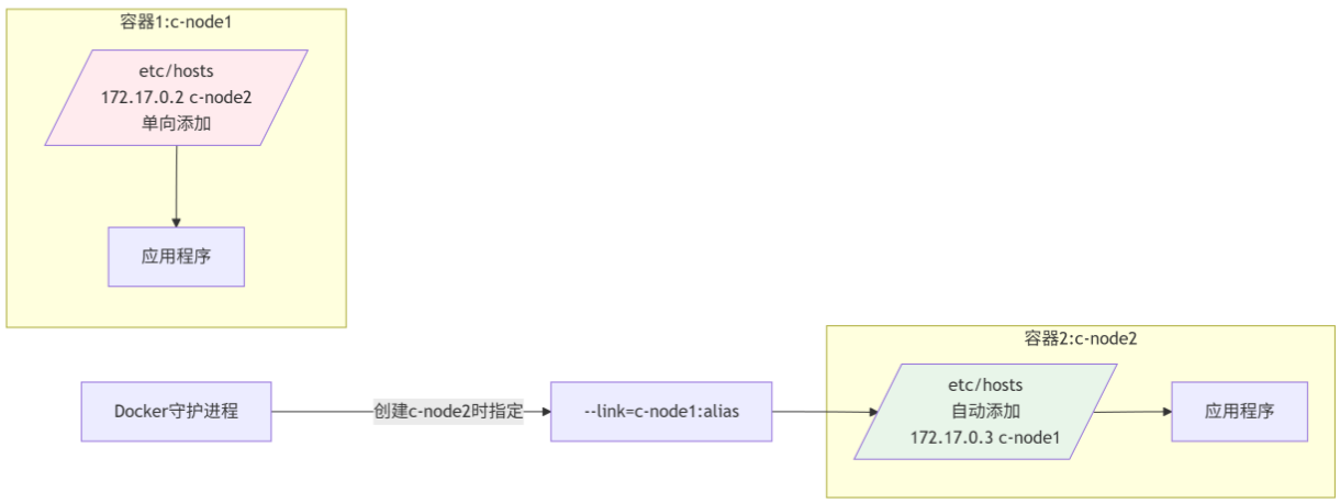 --link参数曾是Docker早期实现容器互联的主要方式,但其工作原理简单且有明显限制: