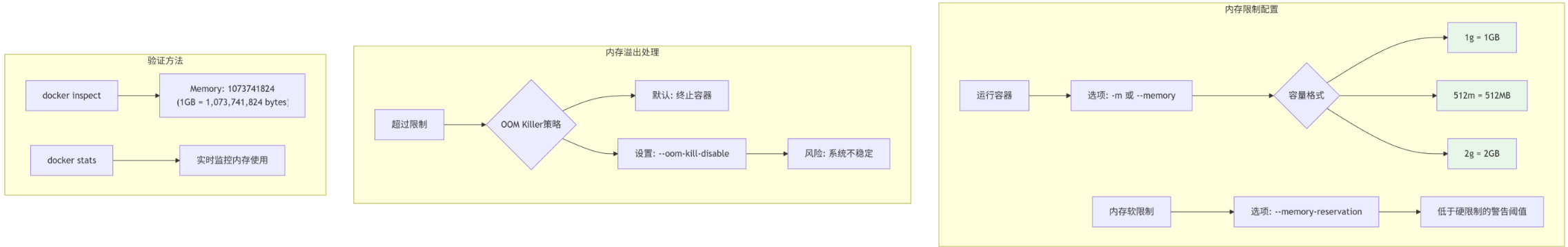 bash# 开发环境:宽松限制 --memory=2g --cpus=2 # 测试环境:适中限制 --memory=1g --cpus=1 # 生产环境:严格控制 --memory=512m --cpus=0.5 --memory-reservation=256m -