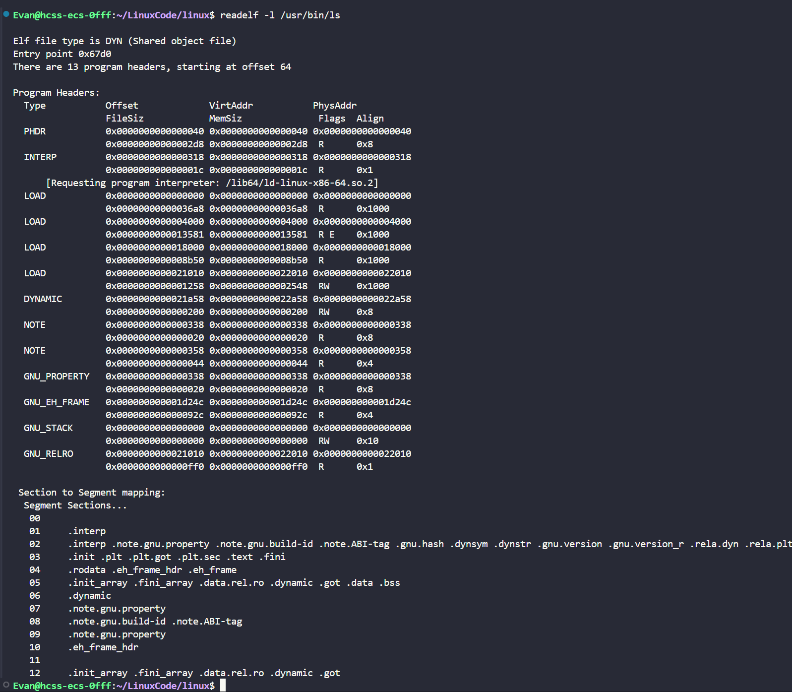 readelf -l /usr/bin/ls