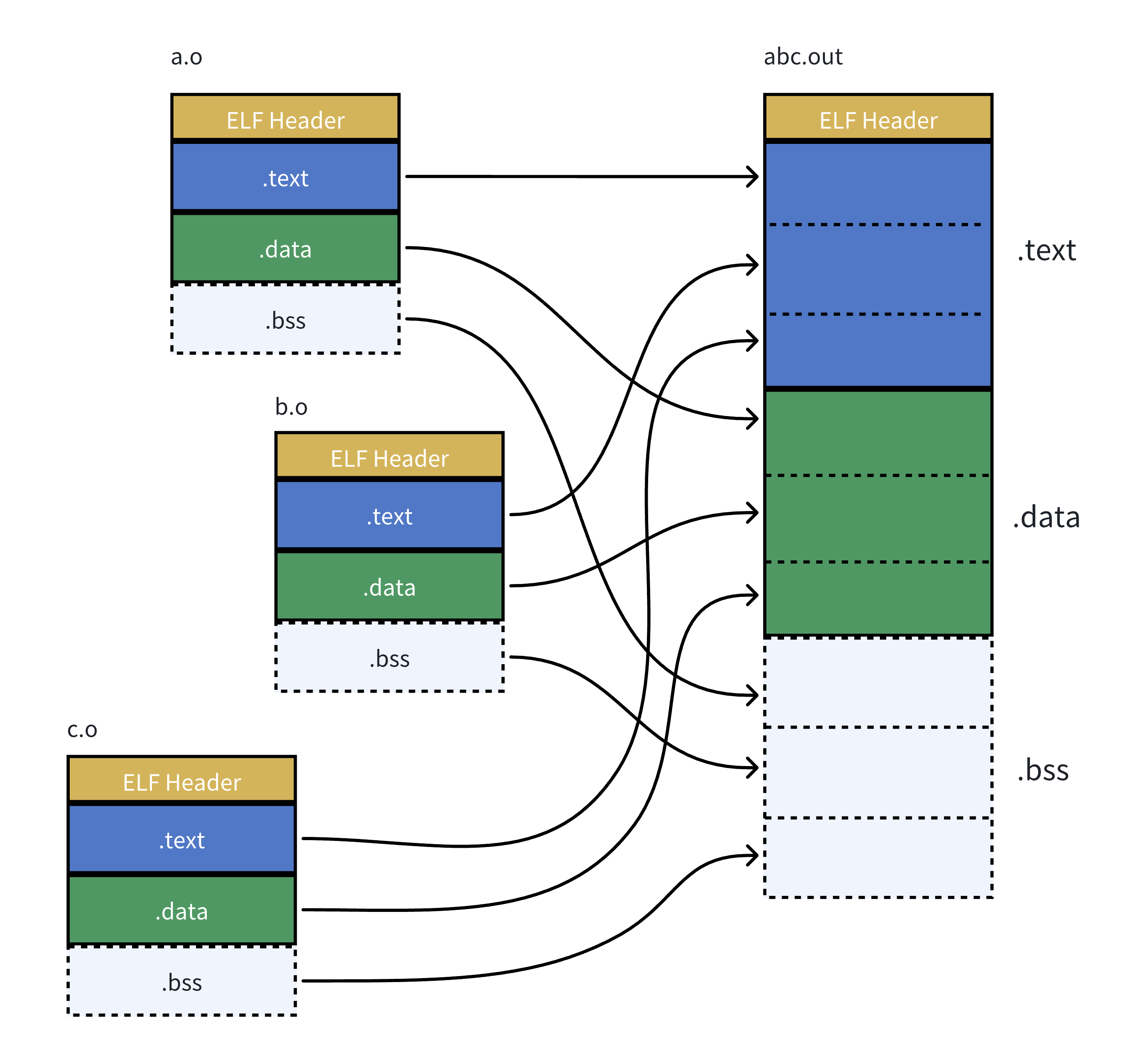 - 可重定位文件(Relocatable File):我们的源代码经过编译形成的目标文件,包含代码与数据。
