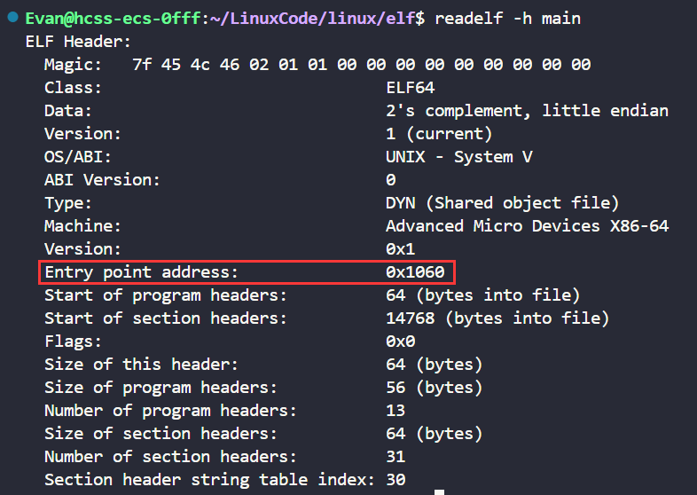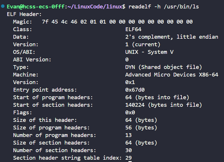 接着我们再来看看ELF Header,使用如下命令:
