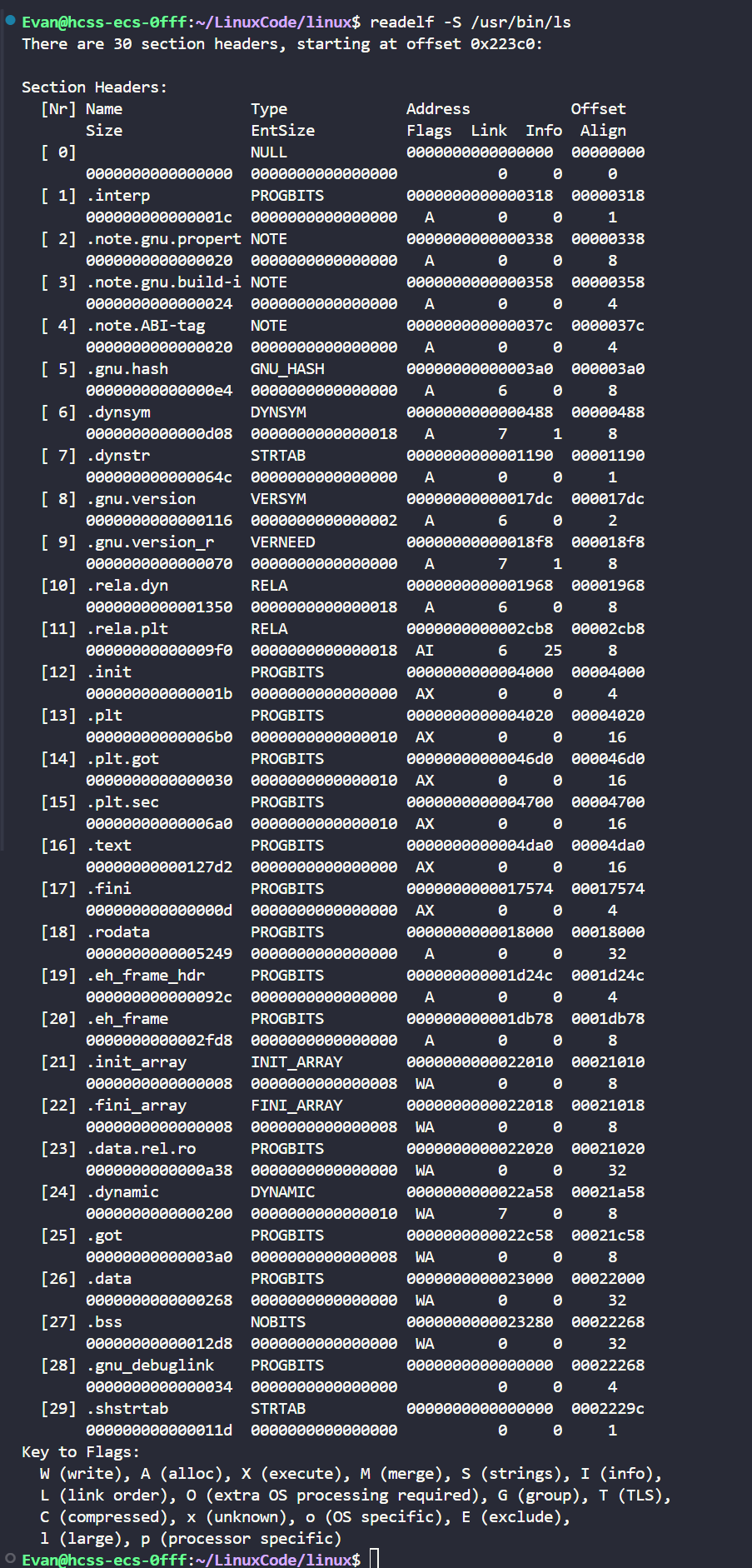 readelf -S /usr/bin/ls