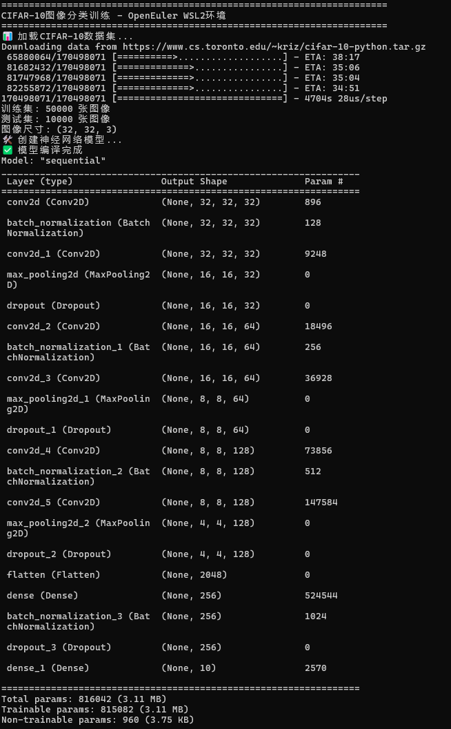 - 最终准确率:CIFAR-10数据集上CNN模型训练准确率达75-82%