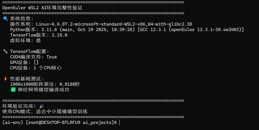 print("openEuler WSL2 AI环境完整性验证")