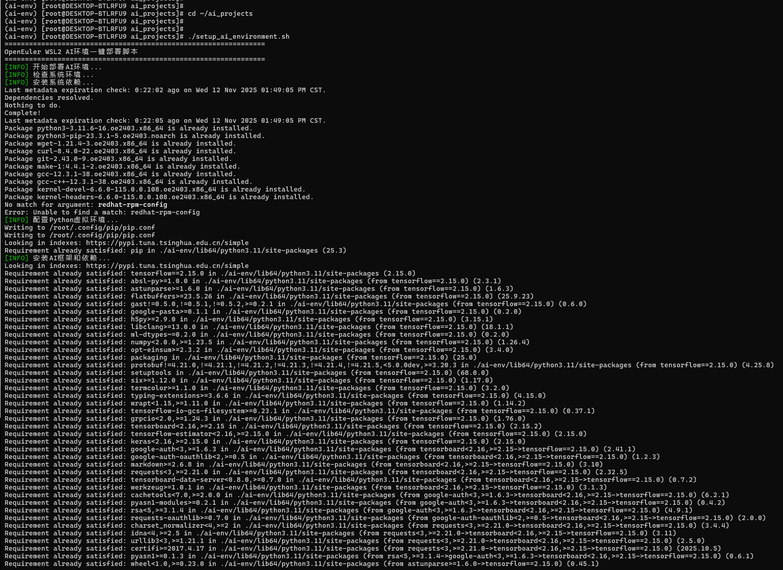 - ✅ AI框架:TensorFlow 2.15.0 安装成功,所有依赖库完整安装