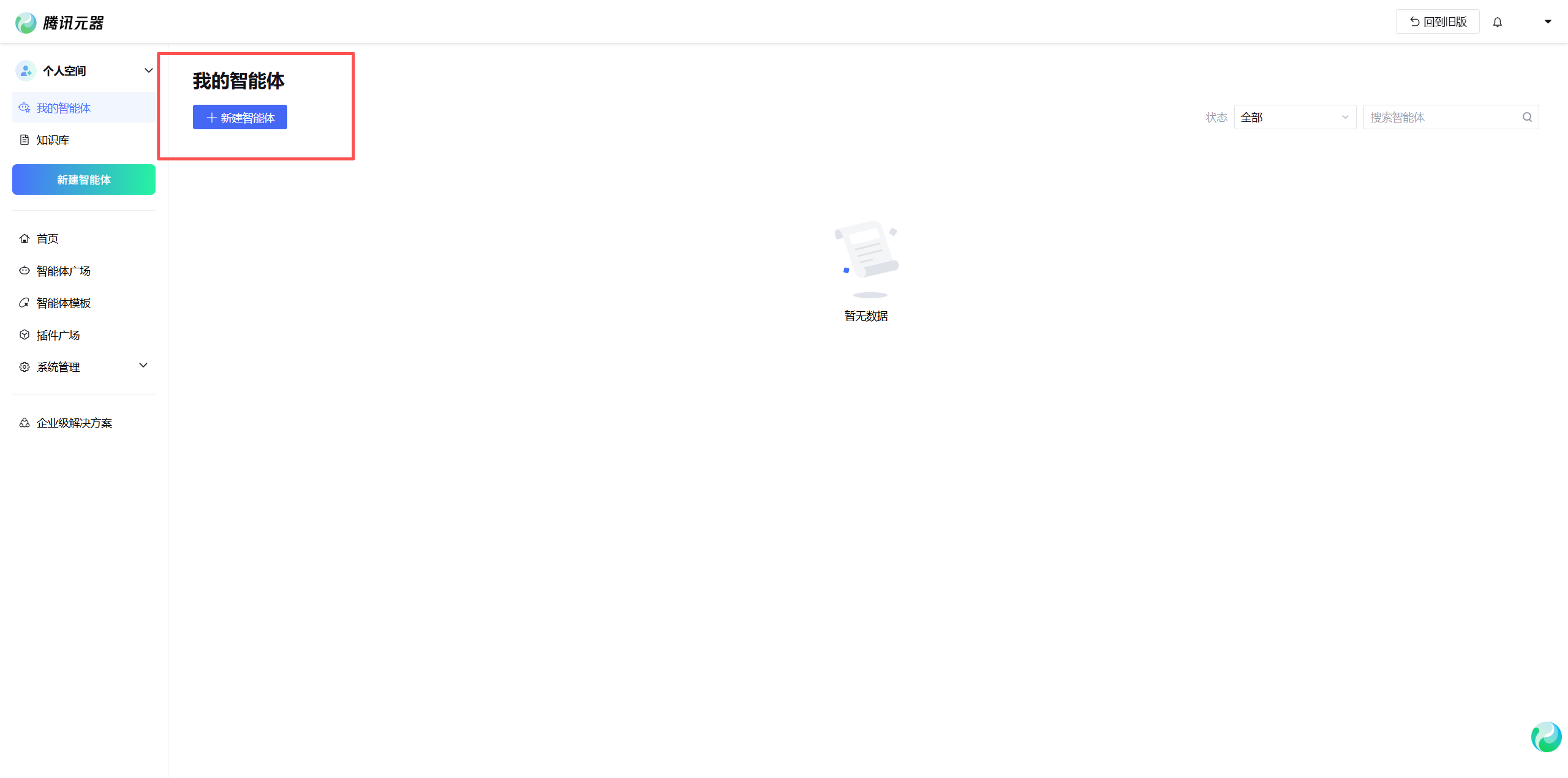 构建智能体的第一步始于平台的入口。进入腾讯元器的工作台,这里是所有创意落地的起点。