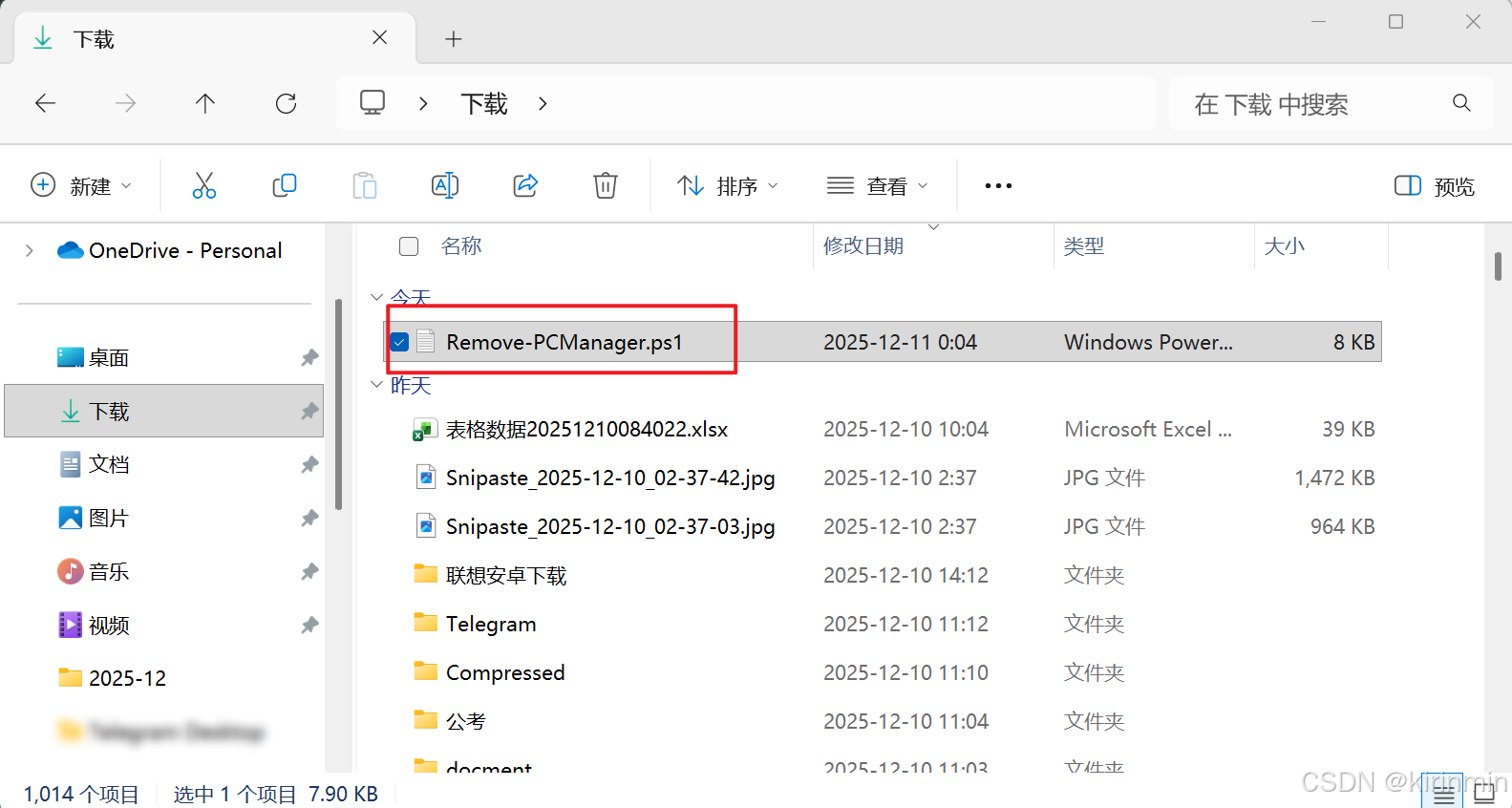 这阵子想把「微软电脑管家」(Microsoft PC Manager)从机器上清掉。常规卸载走完流程,任务栏图标没了,但重启后它又"自己回来了"。期间还踩了两个坑:PowerShell 执行策略阻止脚本运行 、中文输出导致脚本乱码报语法错。下面是完整解决方案和一键脚本,亲测可复现。