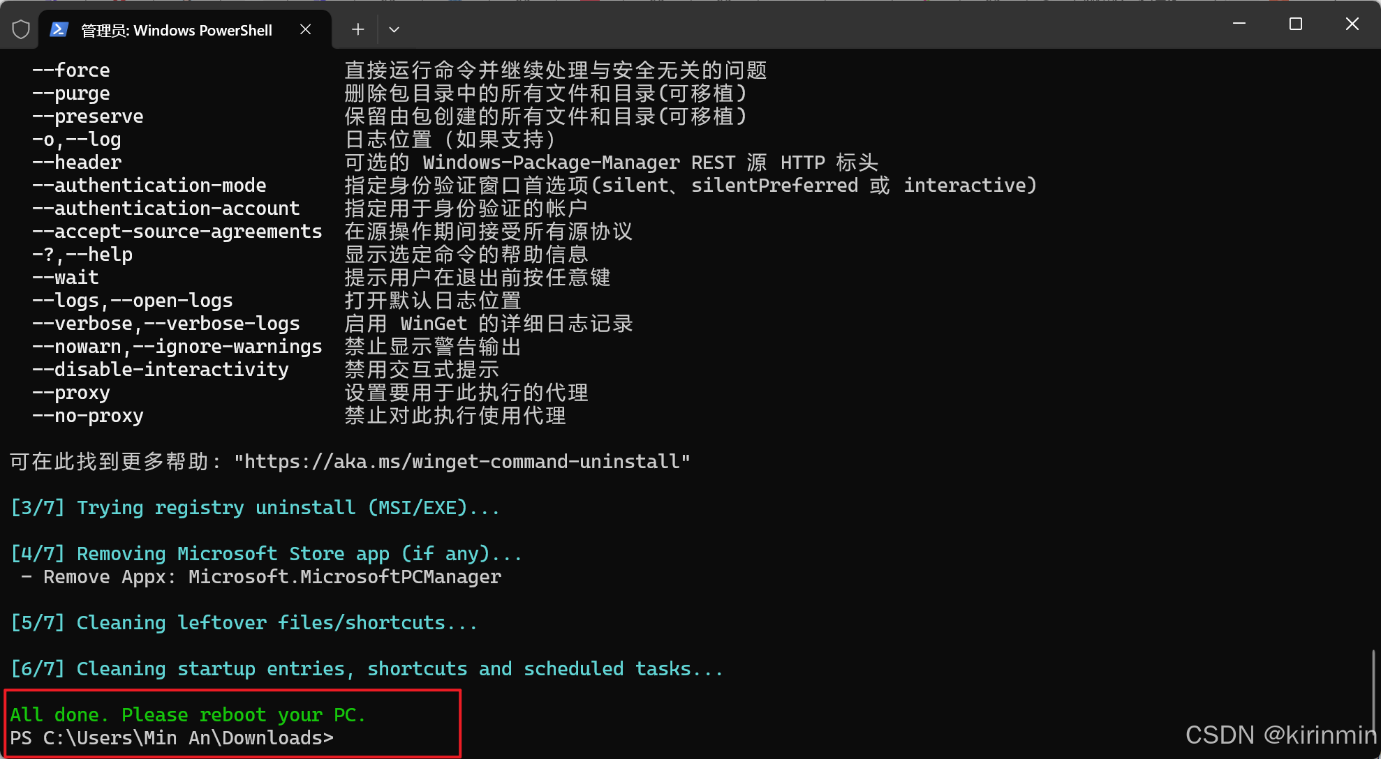 winget uninstall --silent --accept-source-agreements --accept-package-agreements --force --name "PC Manager" 2>$null