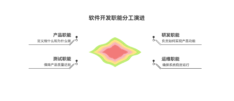 在现代软件开发中,产品、研发、测试、运维的分工边界正从"瀑布式"的清晰隔断转向"DevOps"式的协同融合,但其核心职责依然明确。产品(Product)定义"做什么"和"为什么做"(Why & What);研发(R&D)负责"如何实现"(How);测试(Test/QA)保障"质量达标"(Quality);运维(Ops)确保"稳定运行"(Stability)。 这种分工的演进,本质上是从"职能筒仓"走向"面向价值流的端到端责任",目的是更快、更可靠地交付客户价值。