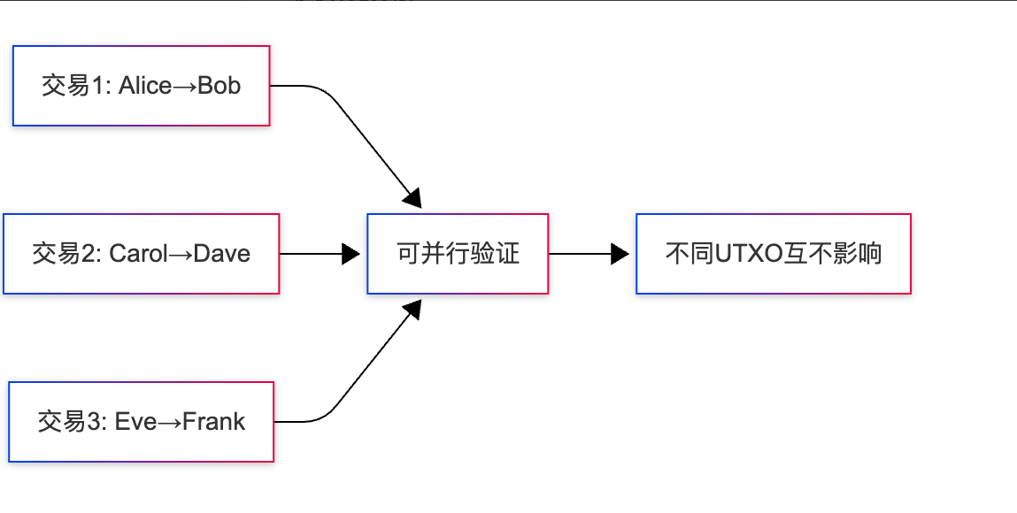 - 不同 UTXO 的交易可以并⾏验证提⾼⽹络吞吐量