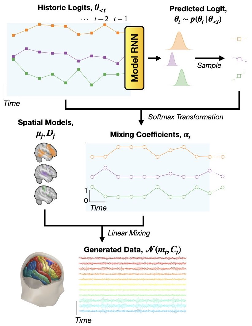 - DyNeMo: w t = [ w t , 1 , . . . , w t , K ] \mathbf{w}t = [w{t,1}, ..., w_{t,K}] wt=[wt,1,...,wt,K] , ∑ w t , k = 1 \sum w_{t,k}=1 ∑wt,k=1 (概率分布)
