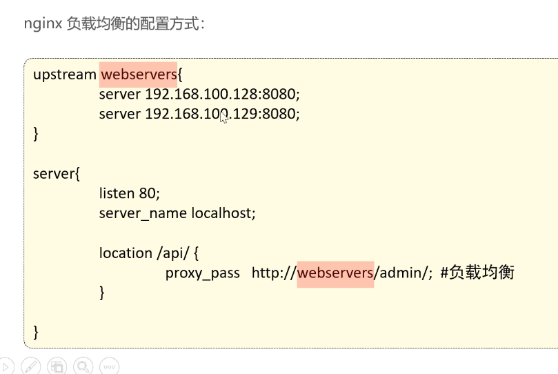 请求中含有字符串/api/那么就会分到websercers配置中这些服务器,包含IP地址和端口号