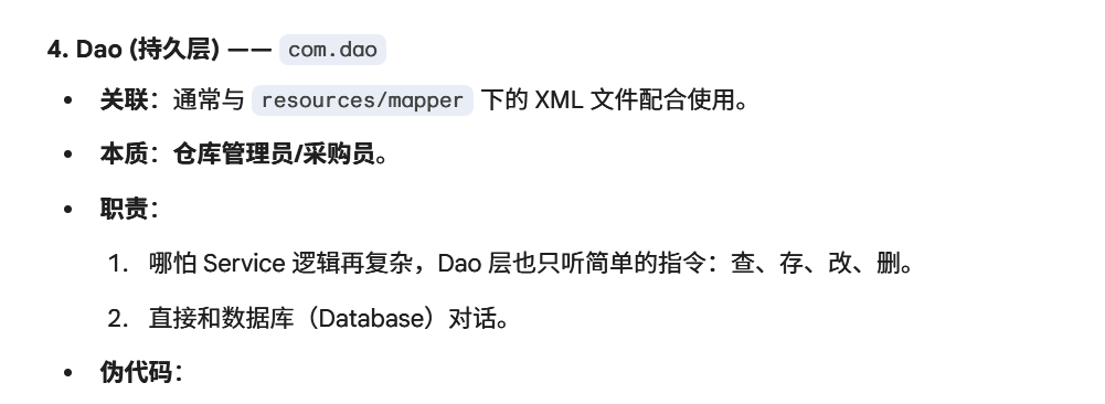[dao层和resources/mapper 下的 XML 文件到底是怎么配合使用的?不理解,写个伪代码举例说明一下。](#dao层和resources/mapper 下的 XML 文件到底是怎么配合使用的?不理解,写个伪代码举例说明一下。)