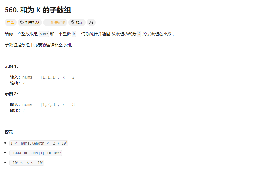 10🎈.和为 K 的子数组