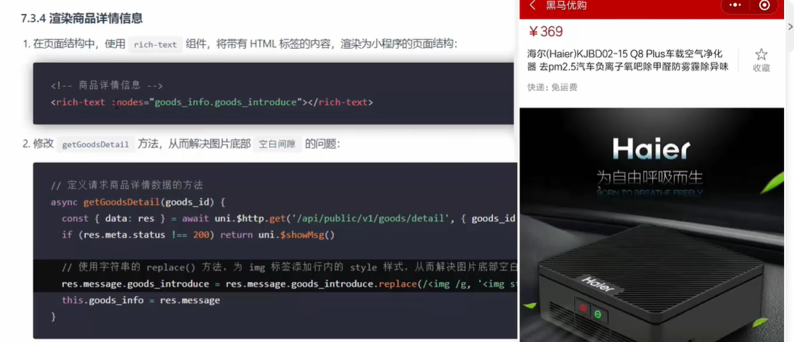 5.商品详情-渲染商品详情数据并优化详情页的显示