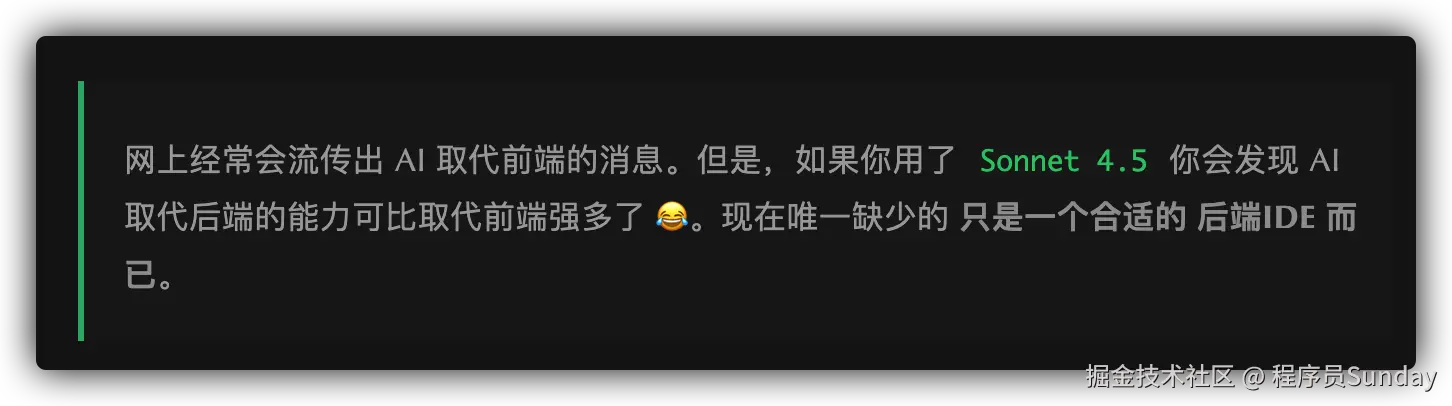 很多做后端的同学不服气,跑来跟我对线:"Sunday,你懂不懂后端?后端涉及高并发、微服务、分布式事务,AI 怎么可能搞得定?"