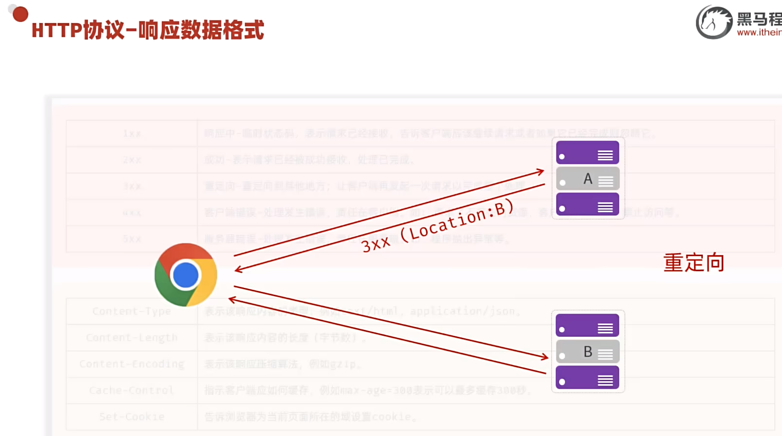 浏览器现象A服务器发送请求,A响应内容不在他这在B里面,返回Location为B让浏览器指向B