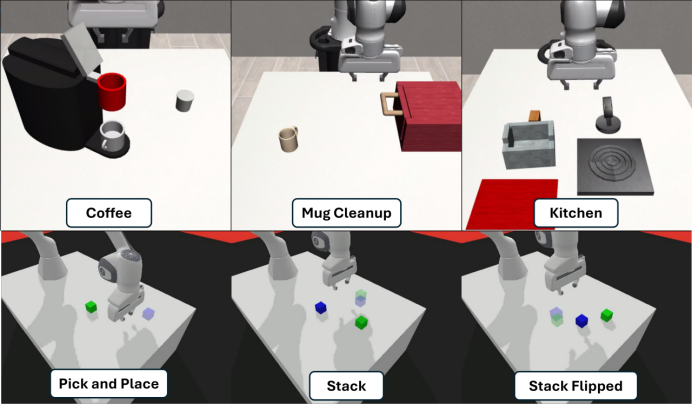 实验设计了一个对于单臂机器人极具挑战性的长程任务------"马克杯清理" 。