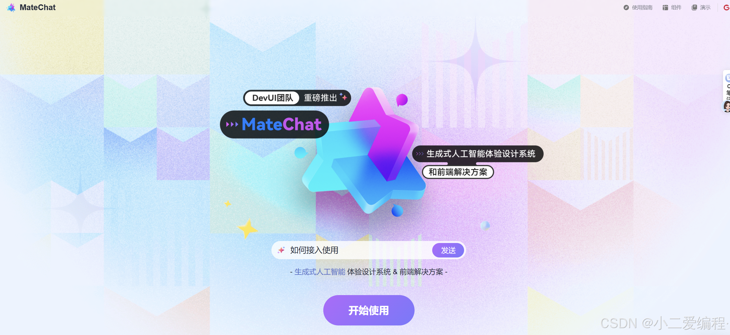 MateChat 是由华为 DevUI 团队打造的前端智能化场景解决方案 UI 库 ,专为构建 AI 应用而设计。它不仅提供开箱即用的对话组件(如气泡、输入框、快捷提示),还支持多主题适配、流式响应、自定义扩展,并已在 CodeArts 智能助手、InsCode AI IDE 等产品中成功落地。