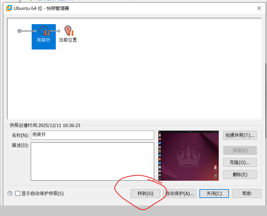 当快照完这个状态,以后搞崩了就可以恢复到这个快照