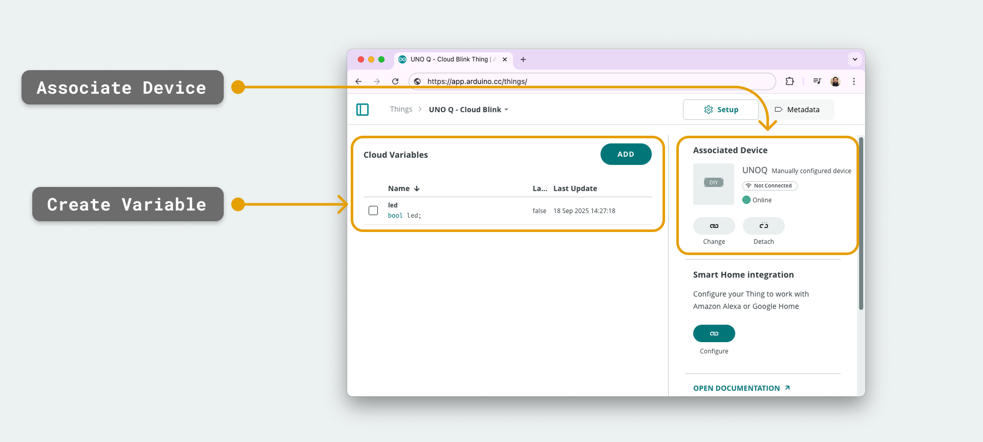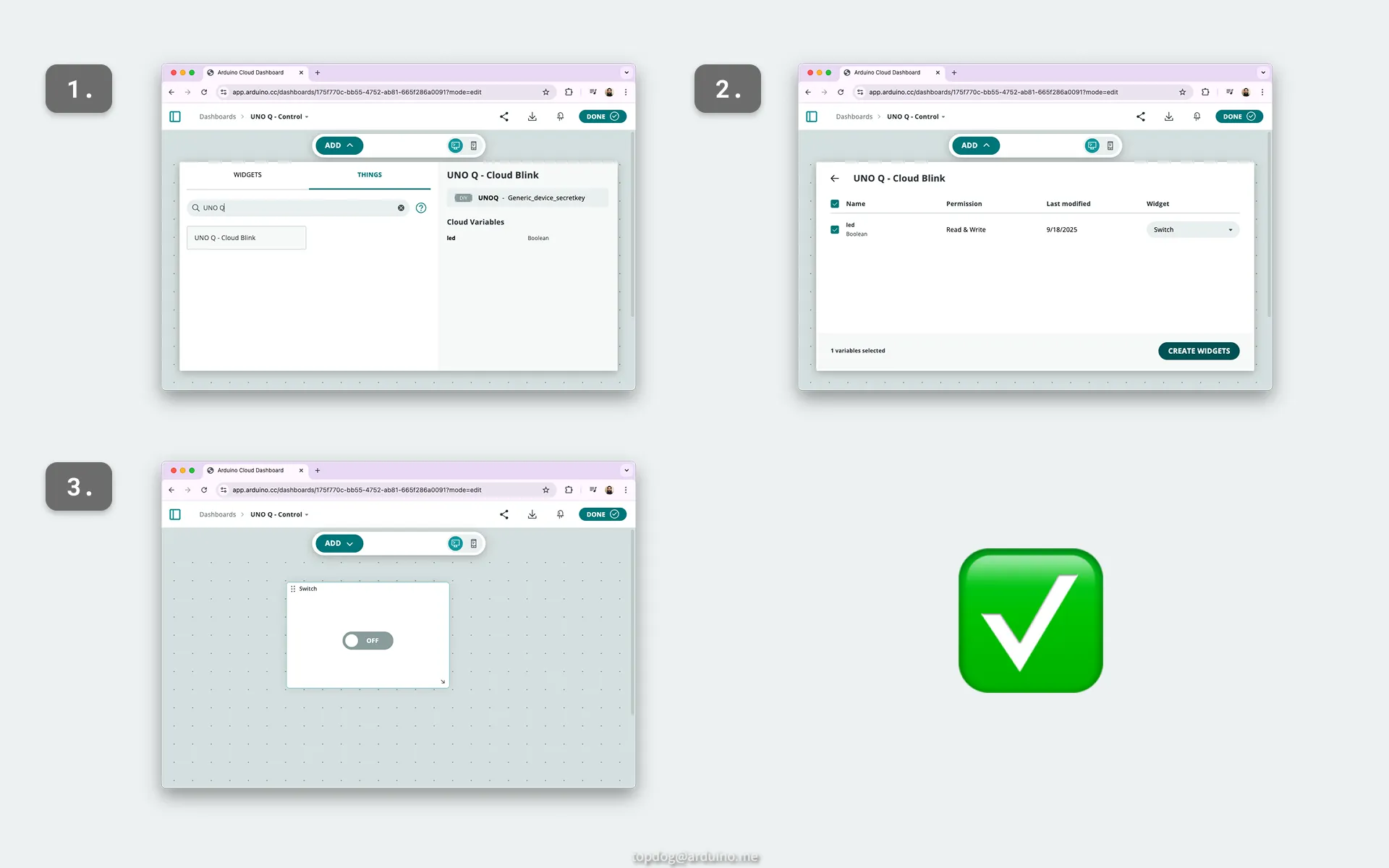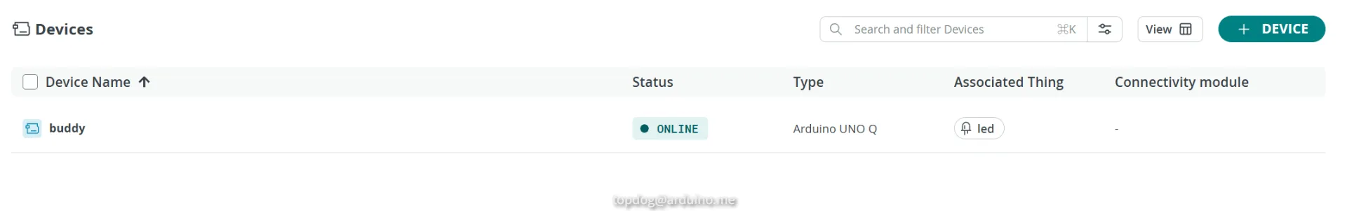 本示例面向对物联网与 Arduino 生态感兴趣的初学者与进阶者,一步一步实现"Blinking LED from Arduino Cloud"示例的原理与操作方案。笔者将通过Arduino Cloud 网页端的仪表盘创建一个开关,远程控制Arduino UNO Q 板上自带的LED。要实现这一点,需要在 Arduino Cloud 中配置设备(device)、Thing(thing)与仪表盘(dashboard),并在 Arduino App Lab 中复制示例项目、填入云端凭证,随后在同一页面的"RUN"模式下启动应用,即可Arduino Cloud 远程点亮或熄灭LED。笔者将分别从硬件与软件前提、云平台搭建步骤、App 启动流程、工作机理以及核心代码逐行解读等角度展开,带您从零搭建一条云端数据通道与到板载LED的联动链路。