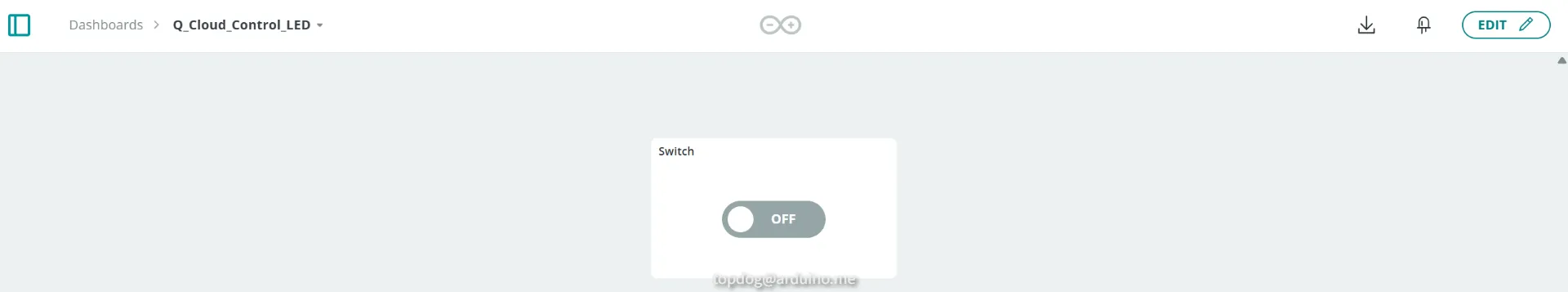 5,当您在仪表盘中切换"led"开关时,云端状态会产生变更,App Lab 中的 Python 会自动收到更新,并通过 Bridge 对固件发起调用,从而实现对 LED 的远程点亮与熄灭。