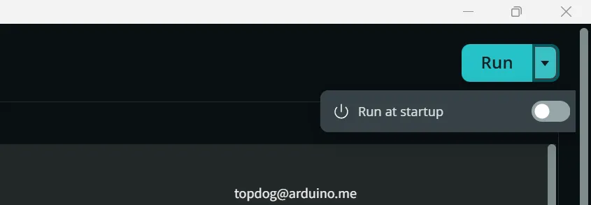7,Arduino app lab 升级到0.3.0版本,设置default位置到了右上角。RUN右面点击下拉框选择RUN at startup,就会在app名称后面出现default。