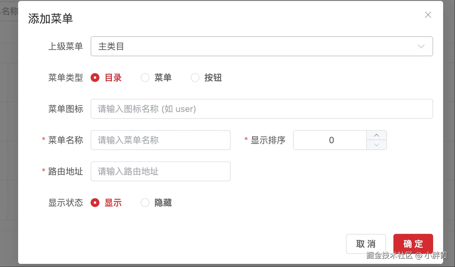 - 动态表单:根据是"目录"还是"按钮",动态控制表单项的显示与校验。