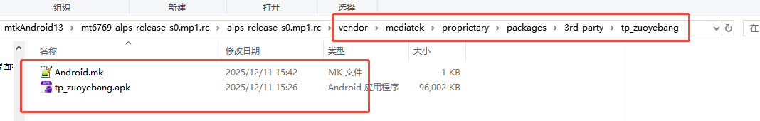 在3rd-party 文件夹下创建自己的需要内置的文件夹,并放置需要内置的应用,如下: