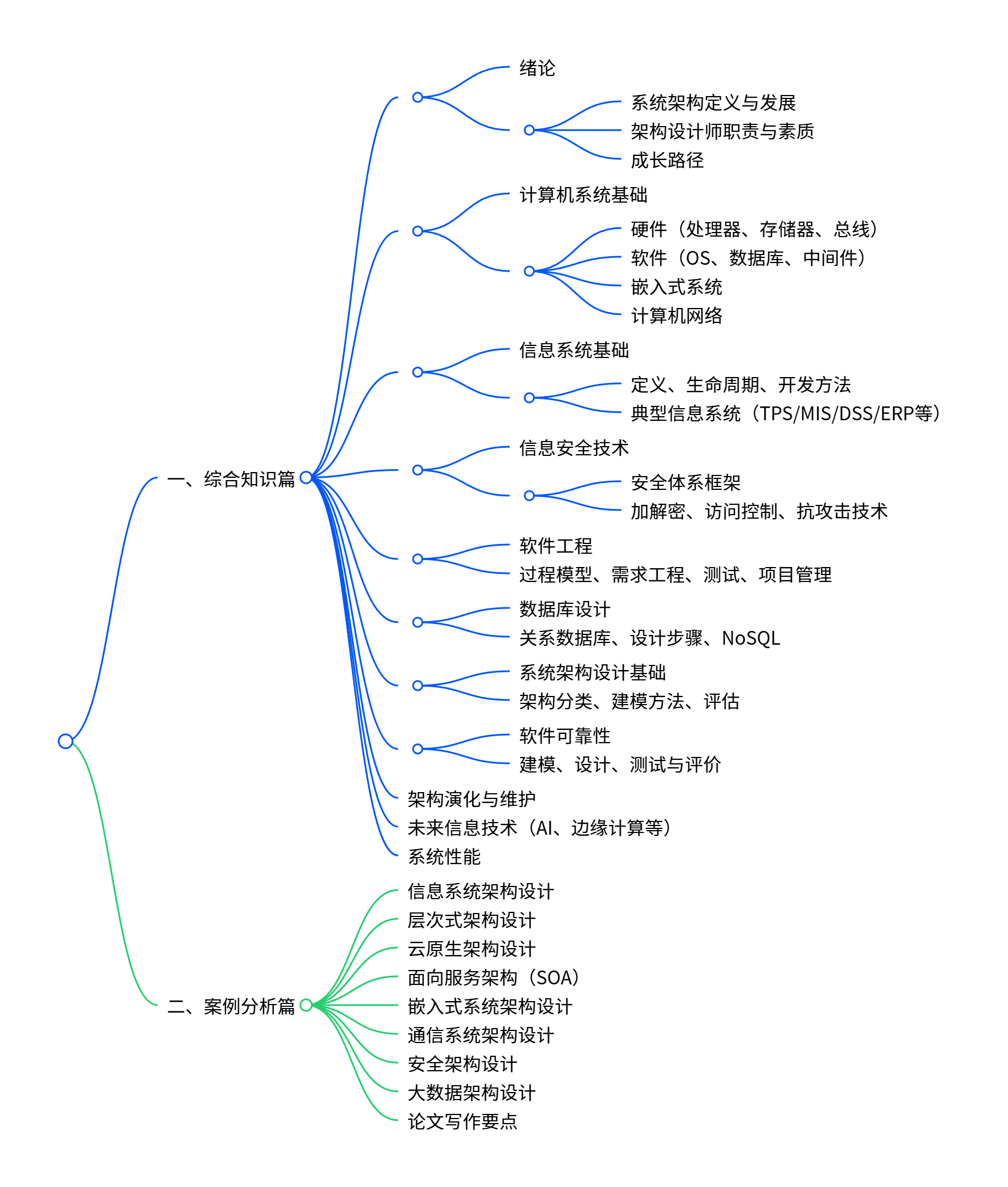 - 下篇(案例分析):侧重架构设计实践、案例拆解与论文写作,覆盖 9 个章节,直接对接下午主观题。