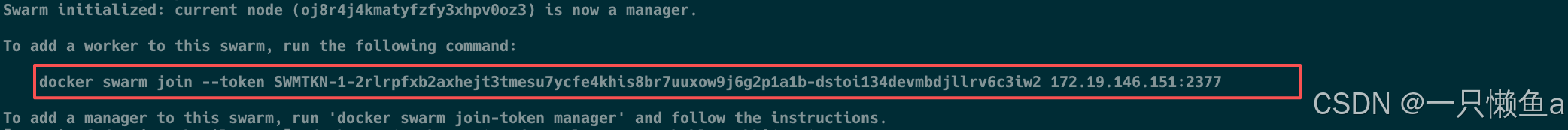 # 加入集群 (节点1执行 docker swarm init命令后,会输出该命令)