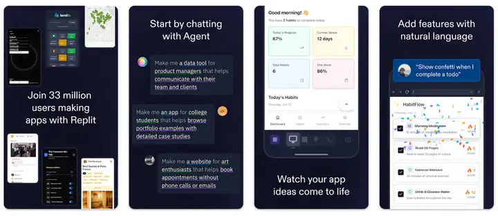 《Replit》是一款让用户用自然语言在手机上即可完成从开发到上线全流程的 AI 原生应用开发工具。功能上看,其优势在于低门槛上手、实时补全与调试体验流畅,以及具备企业级合规能力(如私有部署、SSO 等),因此在创客、学生乃至中小团队中极具吸引力。