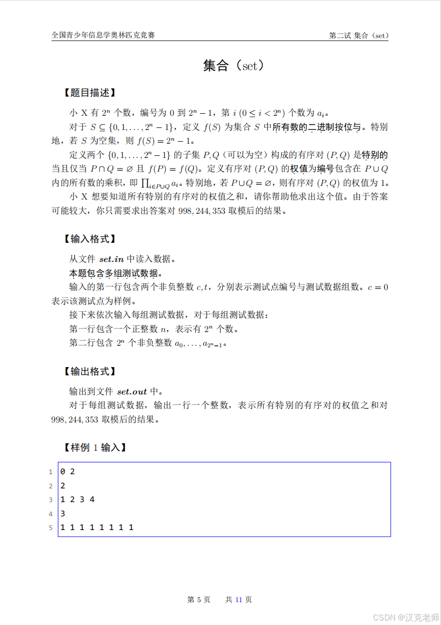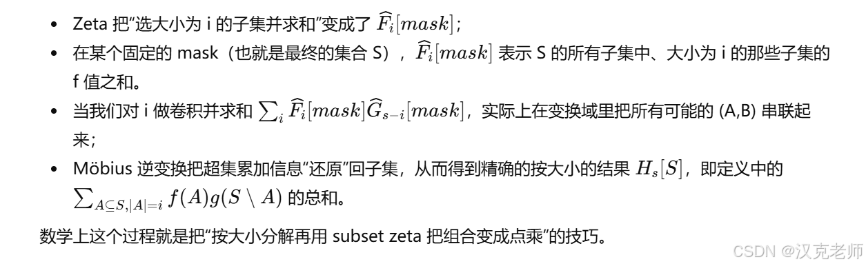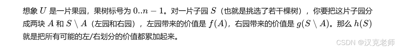 这样 f[S] 最后就代表所有"包含在 S 的精灵组成的小队"的乘积总效果!